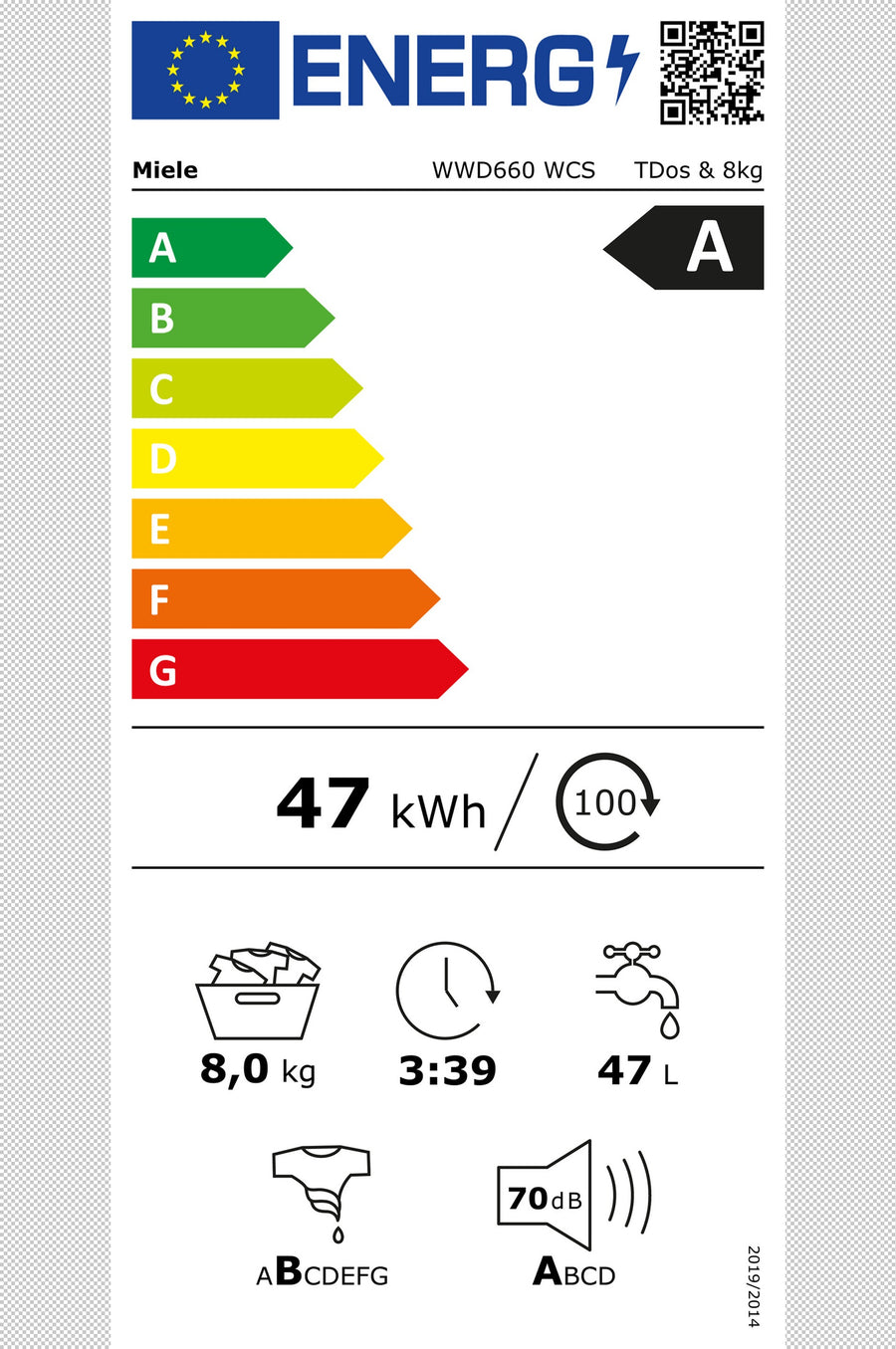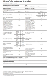 Consommation d'électricité (pour 100 cycles) : 47 kWh