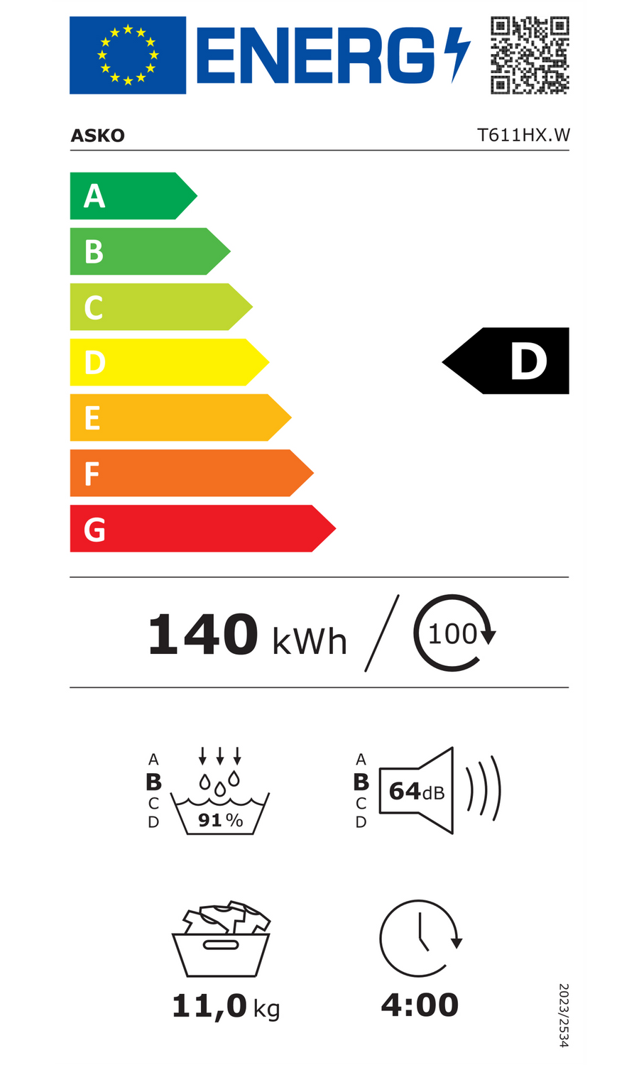 Caractéristiques techniques du ASKO T611HX.W